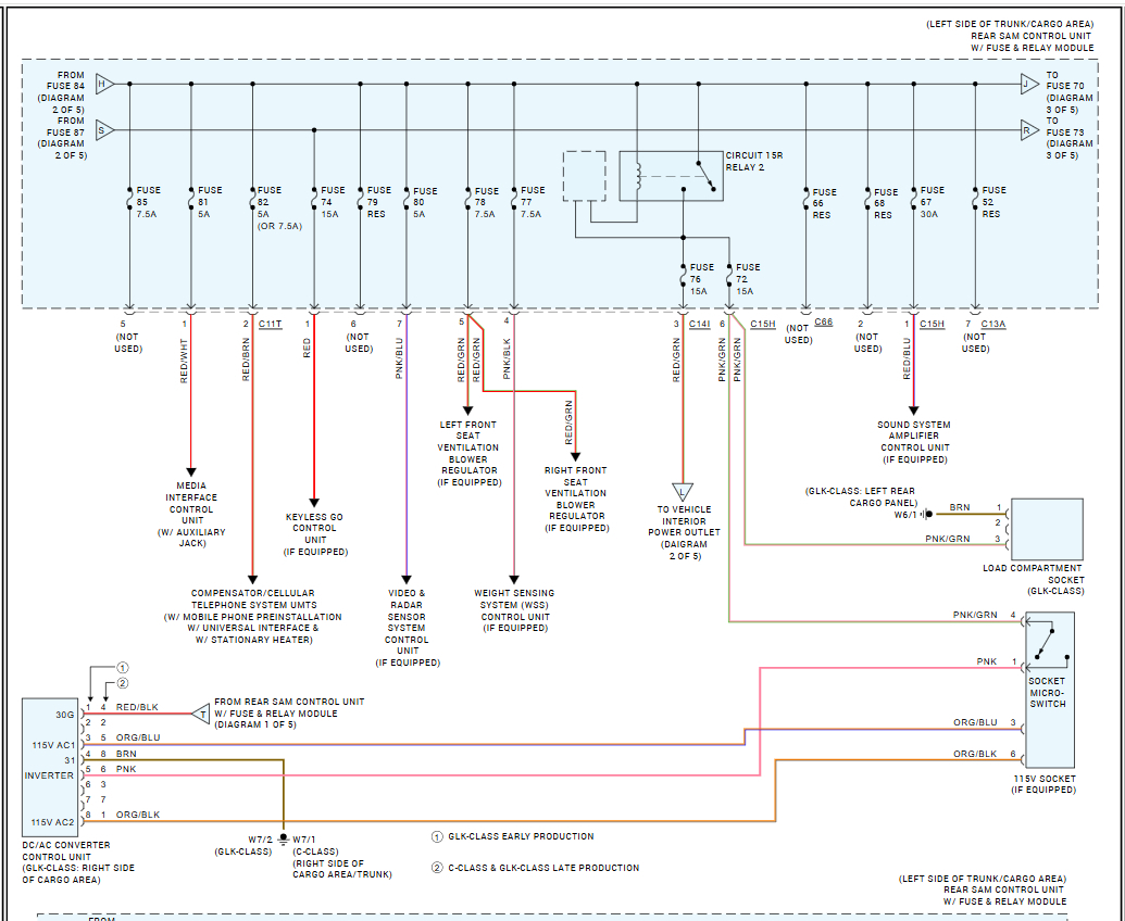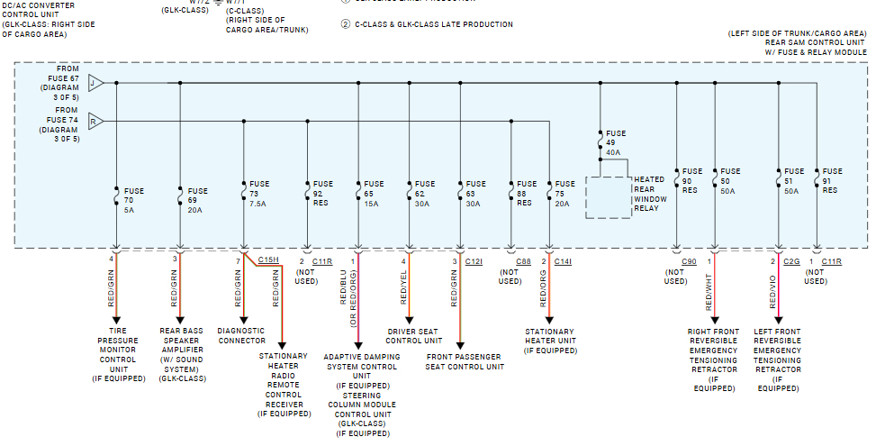 Is there any info on the rear/cargo fuse panel that explains the wiring for the P1-P6 connectors, pinout, and wire size? I need to know where a broken wire goes - only info is color, size and I know it's from P6. But I also need to trace other wires from connector P5, P4 and so on.