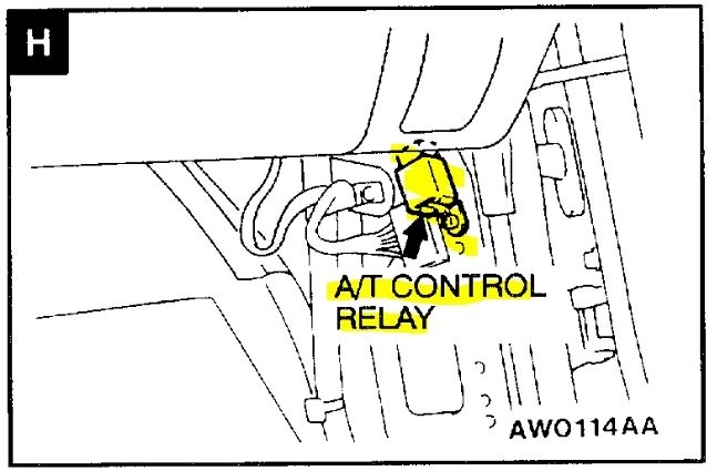 The code you were told is for the engine coolant temperature sensor, so that doesn't fit this problem. Based on what you described and without extensive testing, I suspect it could be related to the A/T Control Relay. The relay is located on the passenger side behind the kick panel. See the attached picture.