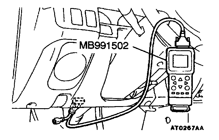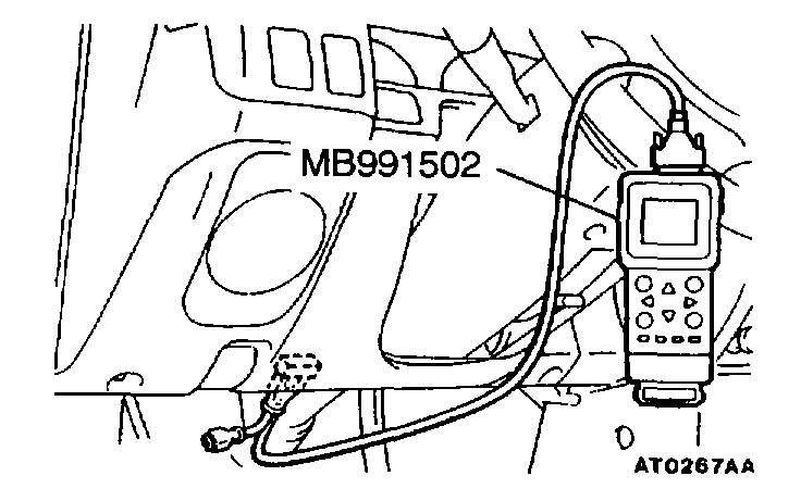 CAUTION: To prevent damage to the scan tool MB991502, turn the ignition switch "OFF" before connecting or disconnecting the scan tool MB9911502.