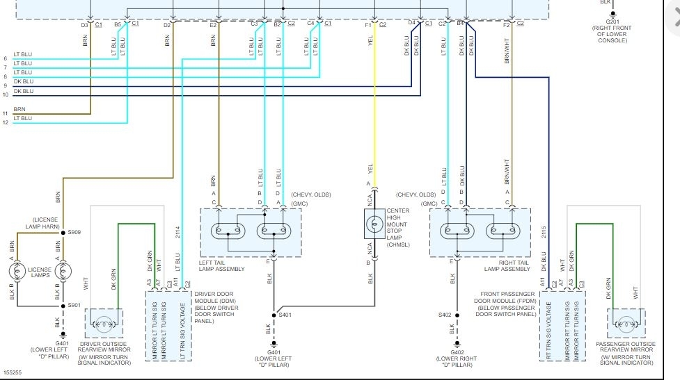 Hi Roy. I am changing tail light pigtails on 2002 Bravada but pigtail colors don't match colors on truck. Could you please send me a color code diagram? Thank you