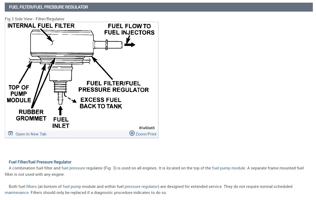 Okay, so it will only run for a few seconds then stall out. You don't see any security light flashing or staying on, in the instrument cluster, do you? You also mentioned you replaced the fuel pump as well; did you happen to replace this fuel pressure regulator (diagram 1) it has an internal fuel filter in it. The fuel pressure spec is 49psi, so if the vehicle is starting and stalling, it can be a security system issue or a lack of fuel volume/pressure.