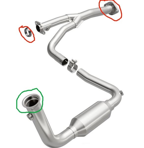 Okay, so when I purchased this used there were zero catalytic converters on this. Someone had just ran flex pipe and it's all full of holes and leaking throwing 02 codes etc. I bought it in PA I'm from NY with mandatory emissions at inspection. I've purchased left and right converters y pipe muffler tailpipe . I can't seem to find any diagrams or YouTube videos on this. I'm going crazy trying to figure out what clamps I need and how many. I also believe there is a small exhaust pipe to the muffler I'm overlooking. I believe I need a few V clamps springs and bolts 2 u bolt clamps and a gasket. I have 2 new downstream sensors as one is welded to the flex pipe on there so I just ordered 2 new ones just in case. I'm just trying to make sure I have all the parts needed before I start this job I'm pretty sure I can get someone to help. I'm tired of buying used vehicles every so often so I'm just going to put the money into this and hopefully keep it for 3 to 5 years without starting over on another used vehicle. Parts for this are very expensive I have found out! Any diagrams or input on a complete exhaust replacement from converters to tailpipe would be appreciated and definitely help. I probably could have just used a universal cat replacement but I believe in just doing it the right way as long as I have the extra money right now. Lord knows this vehicle is breaking the bank. Lol