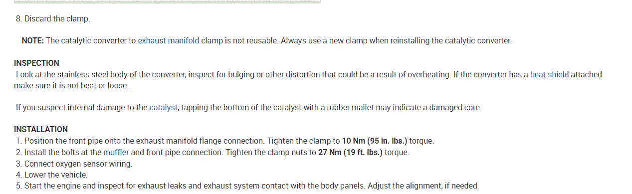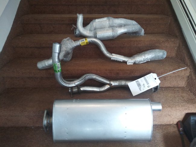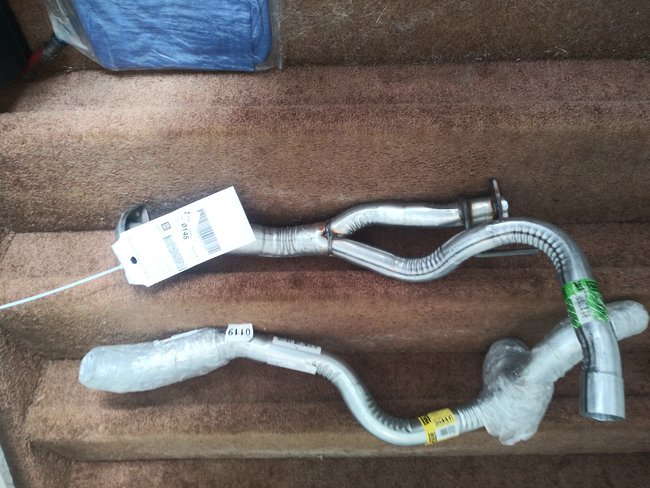 Well, I have pics of the new exhaust parts I can leave a few pics for you. A few look upside down. I put in over 70 hours at my job this week so I feel a little upside down. myself haha If you could tell by looking at them if maybe that one part is welded to the muffler already or is that something different? I believe there is a flange on the end of one side of the converters. I just need to figure it all out although you have already told me the clamps and how many I need. So instead of the U bolt clamps do you mean the band sleeve coupler-like clamps? I'm not good with the correct terminology lol I do believe I DID buy all Walker parts. I forgot to look under the hood. I'll check that with a flashlight the next time I take my dog out. Thanks so much...