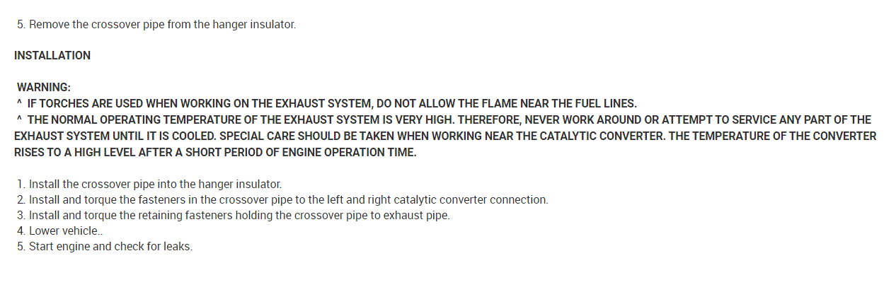 I don't know if you need them, but I attached directions below for different parts of the exhaust system. I hope they help.