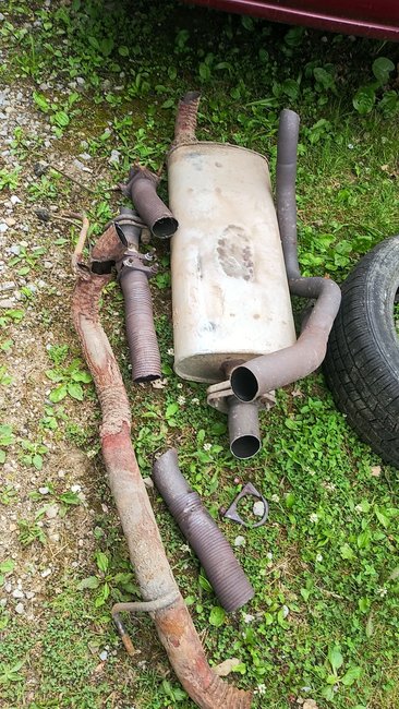 Thank you. Yes, I jacked it up and put pieces of wood under the front tires and jack stands on both sides underneath and then I let the jack down. You can never be too careful. Yeah I knew it was a mess. I was able to save the upstream O2 sensors. The other two welded to the pipes are getting tossed with the pipe.The guy I bought it from buys and flips cars. There's still a right way to do wrong. I know they sell different size flex pipe so i don't know why he even put it on because even with the clamps he had on there was about 1/2 in gap so it wasn't sealed anyways. Oh yeah I knew it was a mess that's why I dreaded starting it. The original V clamps were still on there. My reciprocating saw sure helped, lol.Thank you as always and I'll post more tomorrow afternoon. Have a good night!
