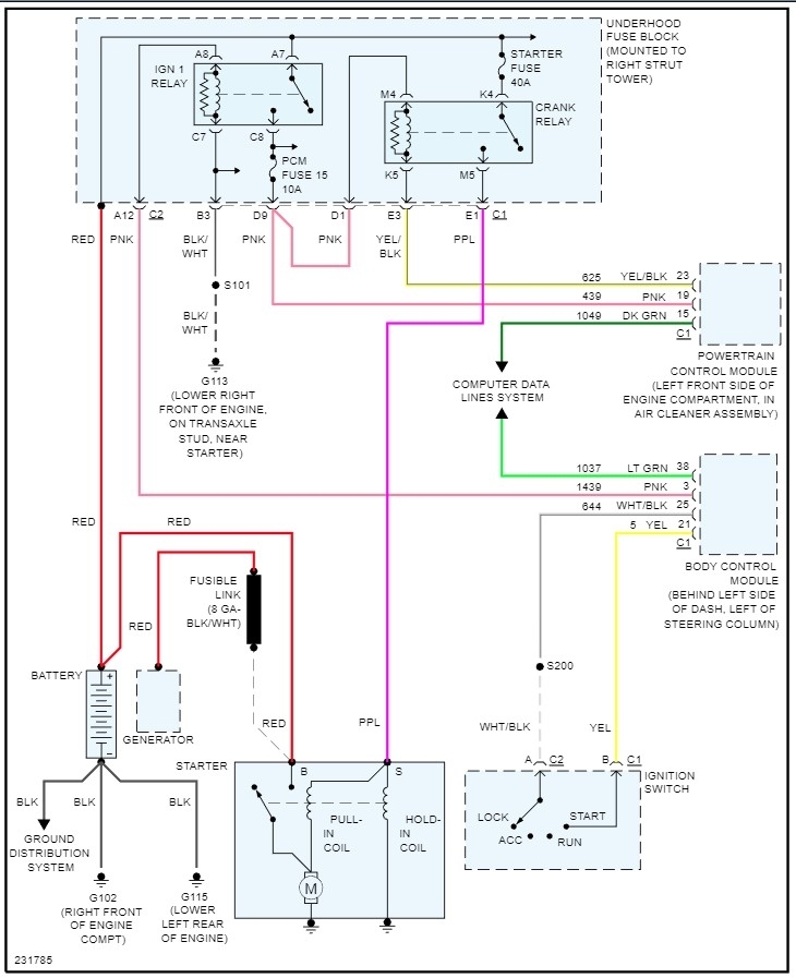 Okay, you say it makes a click sound, which sounds like a bad starter or a poor ground or power feed to it. A corroded battery cable or ground cable may let enough power through to light the lights but not power the starter. I would start there, pull the battery cables at both ends and clean them, then make sure the battery is at full charge with a meter. Then if it still just clicks go to the starter and use a test light at the purple wire that connected to the S terminal on the solenoid. Turn the key, does the test light come on? If yes, the new starter is bad (not uncommon these days) if the light doesn't come on the go to the under-hood fuse box and find the starter relay. Does it click when you turn the key to start? If yes, pull it out and look at the bottom, note where terminals 30 and 87 are. Take a short wire and jump those two terminals in the relay socket. Does the starter turn, if yes, the relay is bad. If no and you have power to the relay and the light didn't light the purple wire likely is faulty. The common failures are the relay and starter.