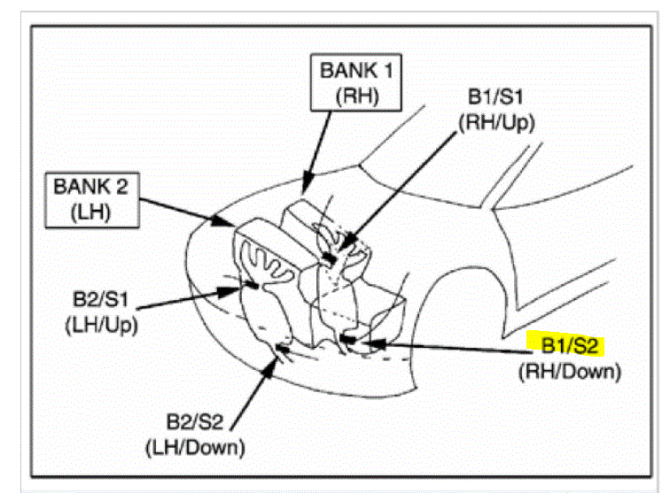 As far as the oxygen sensor (B1S2) I attached a couple of pics below to help you locate it. Note that bank 1 is close to the firewall. Bank 2 is close to the radiator. Also, sensor 2 will be after the catalytic converter.
