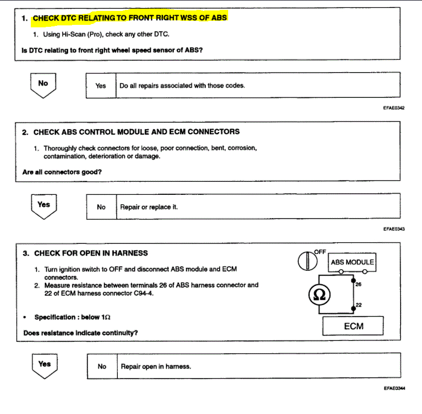 That code is specific to the right front wheel speed sensor (WSS). If you look below at the attachment, it explains everything that the sensor is responsible for. One would think just speed, but it's a lot more.
