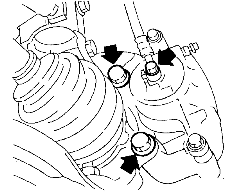 3. Suspend the cylinder body with wire. Then remove pads with retainers, inner and outer shims and pad return springs.