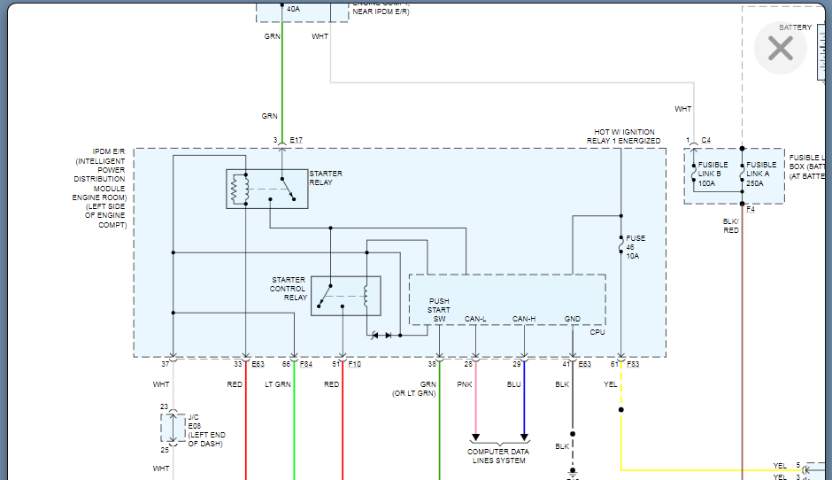 Bought a brand new starter for my car listed above, installed it and car turned on and ran perfectly. Drove a few miles and parked for a few hours and car would not start. Came back next morning and tried jumping the battery, uninstalled and tested the starter, but still no crank- just one click when pressing push start. It seems the starter is not communicating with the car, so my next guess was the starter relay. I checked all of the fuse boxes, read manual and searched the web and cannot find its location. Does any one know where the starter relay is located on the the car listed above S Sedan? Or maybe any suggestions on what the issue could be? Many thanks.