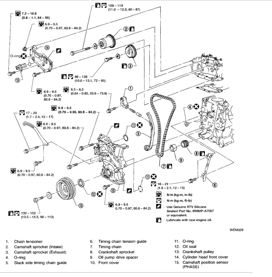 - Ensure timing belt, camshaft sprocket, crankshaft sprocket and belt tensioner are clean and free from oil or water.