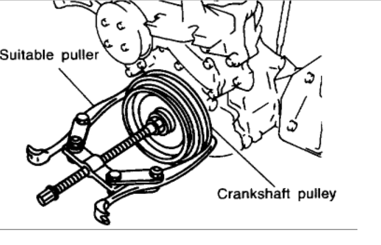 NOTE: The crankshaft pulley is accessible after removing side cover from inside R.H. wheel house.