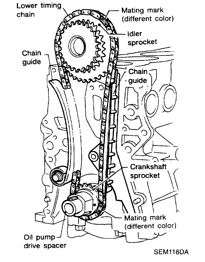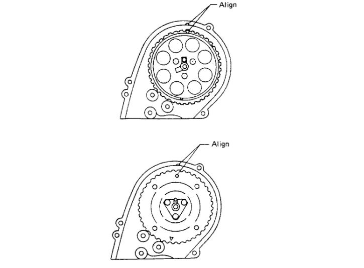 - After removing timing belt, do not rotate crankshaft and camshaft separately because valves will hit piston heads.