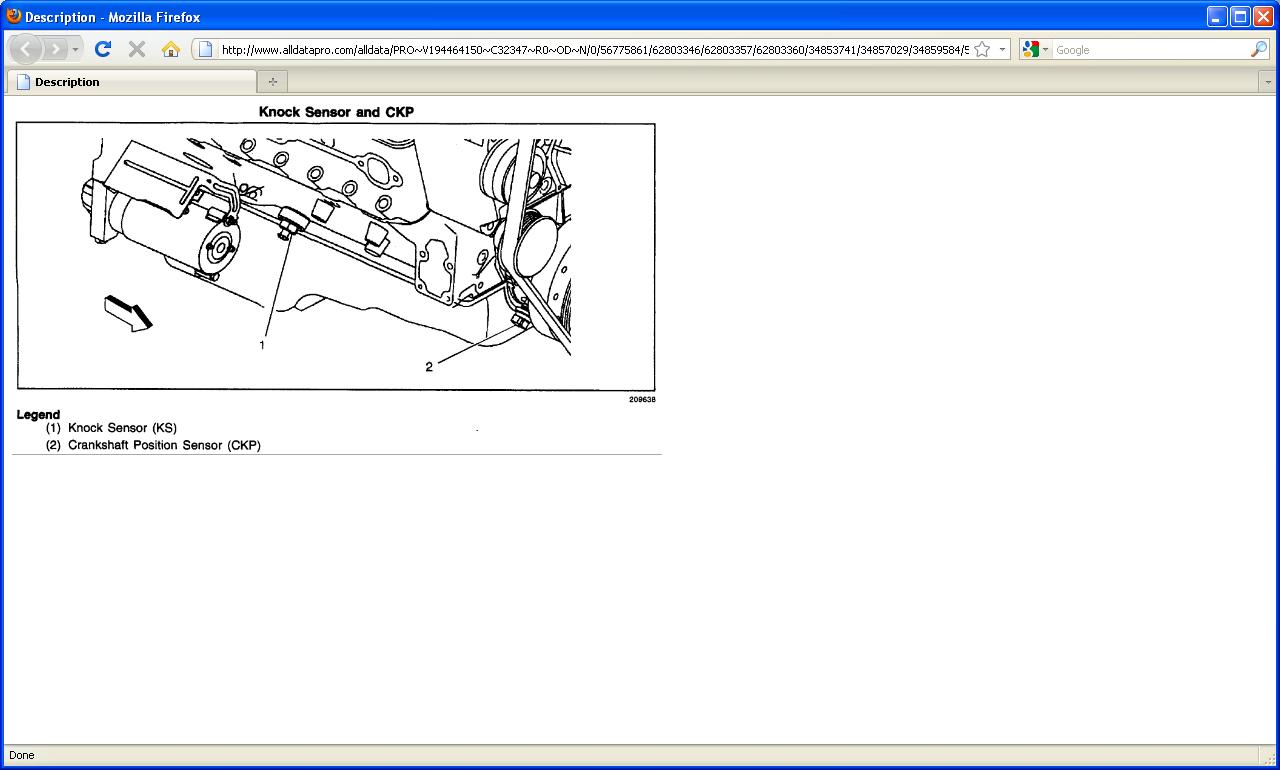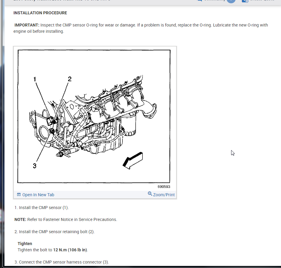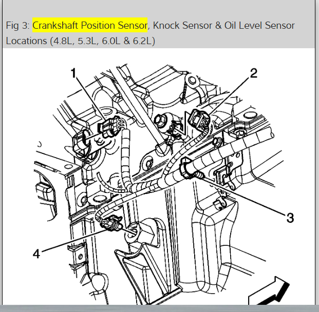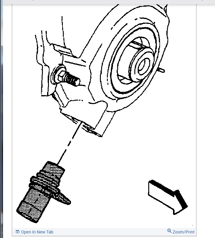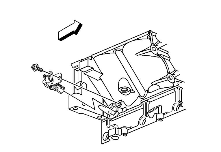 Important: The CKP sensor bolt has adhesive applied to the threads. The adhesive may have come off during removal of the bolt. Ensure that the bolt hole is clean of any debris before installing the reinstalling bolt.