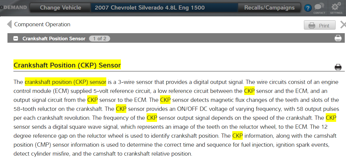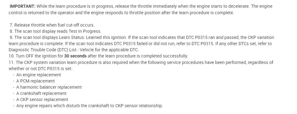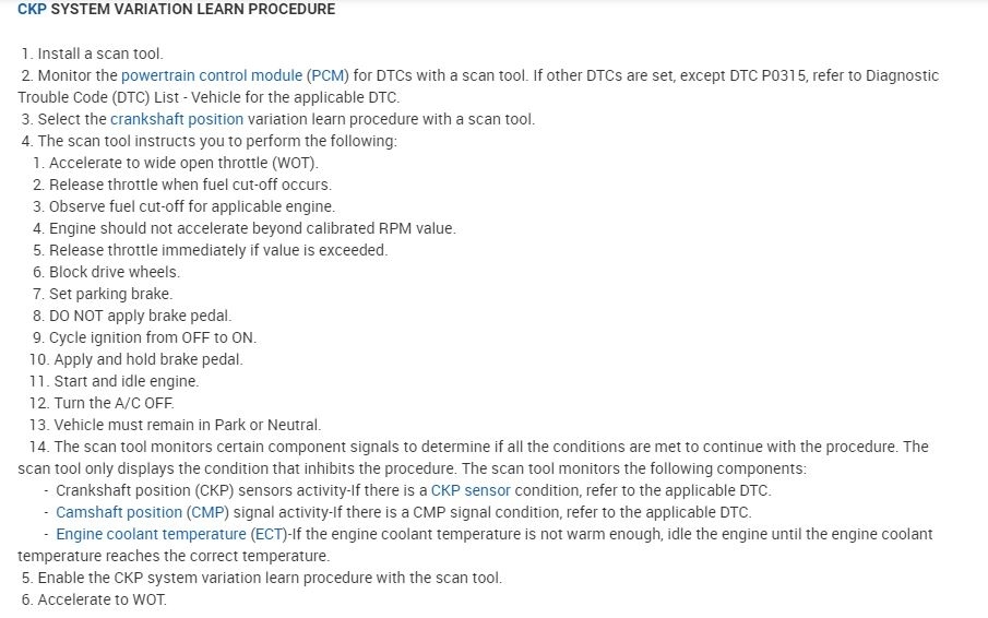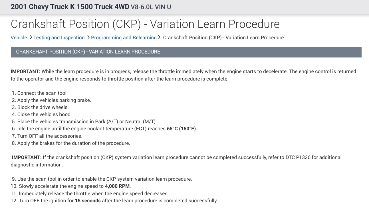 Perform the CKP system variation learn procedure. Refer to CKP System Variation Learn Procedure .