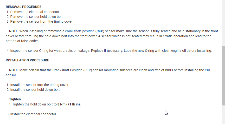 Prior to removal of the CKP sensor, twist the sensor back and forth.