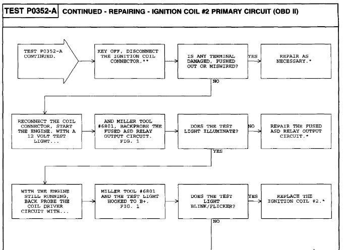 Let me know what you find. If there's no fault code related to one of those sensors, and the ASD relay doesn't turn back on during cranking, we're going to need a scanner to view live data. I have a Chrysler DRB3 for all of my older vehicles. That one lists each sensor with a "No" or "Present" during cranking. Aftermarket scanners have a similar way to show that information. If one doesn't switch to "Present" when you start cranking the engine, that is the circuit we need to diagnose. Fault codes never say a sensor or other part is defective or needs to be replaced. They only indicate the circuit that needs further diagnosis. In this case either sensor is a good suspect, but we normally want to do some other tests first before blindly replacing the sensor. We'll discuss that further once we know if one of those circuits has failed.