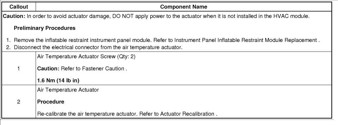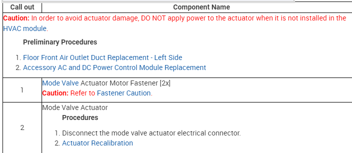 The diagrams are Mode, Right then Left air blend door actuators. After replacing the actuator the system may need to relearn which can be done by removing the HVAC fuse for 15 minutes.