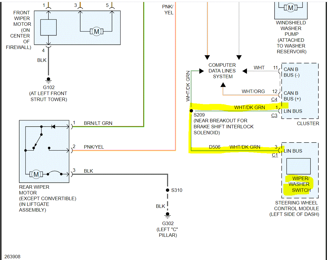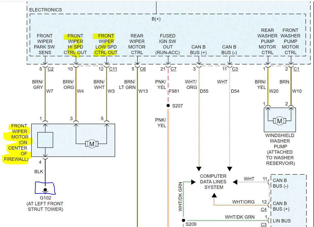 Pic 3 below shows the wiring schematic I am basing this on and how the tipm sends power to the motor. Now, if there is no power to the motor regardless of connected or not, then we either have a bad ground (which I circled in pic 3), a fault in the LIN/CAN, or an open circuit between the TIPM and the motor.