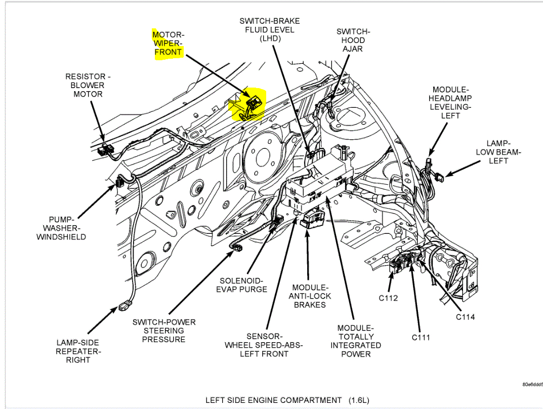 First, locate the front wiper motor and disconnect the black connector to it. It should have 4 wires to it. See pic 1 below. Disconnect the connector.