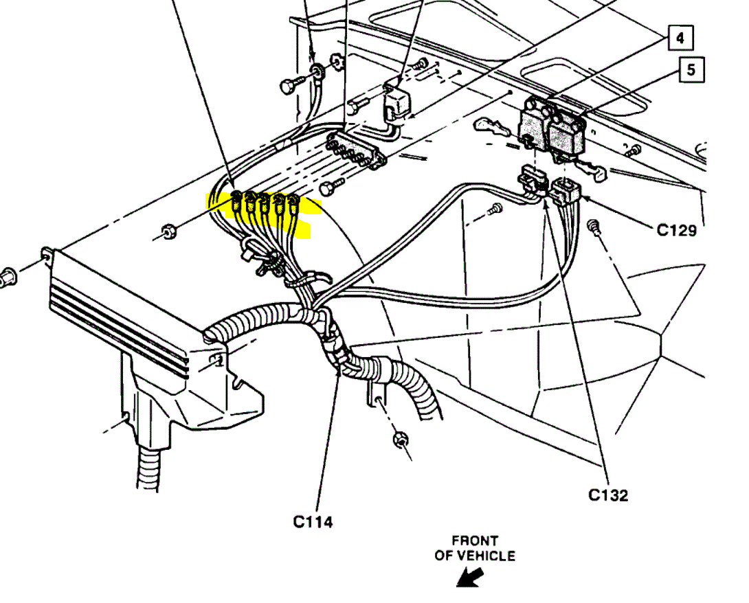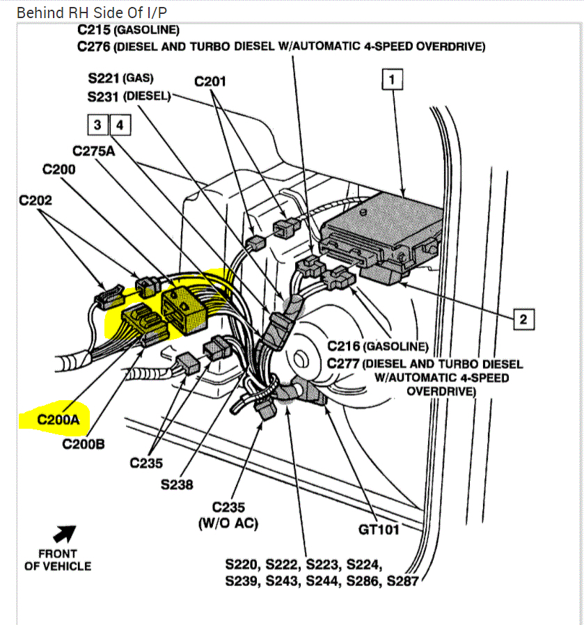4. Pic #4 - find the connector behind the glove box coming out of the wire loom from under the heater blower and check to see if 12 volts are present?