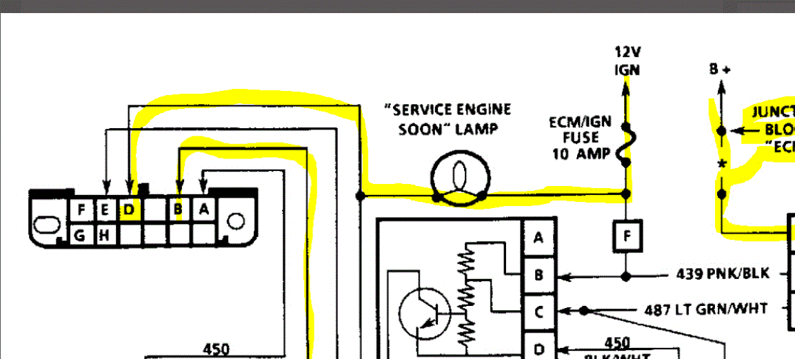 1. Pic #1 - check for 12 volt in the black/white wire of the right hand plug in the ECM (which I'm assuming is all the inputs)?