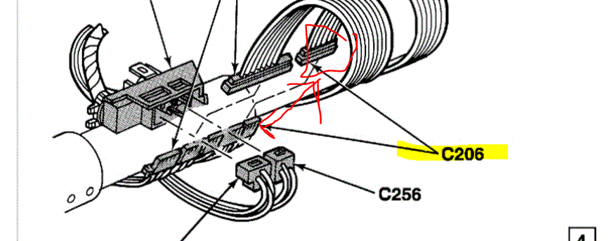 3. Pic #3 - this looks like a connector located on top of the steering column under the dash, which should have two plugs. I am to check the one closest to the steering wheel for power - somewhere in one of the leads?