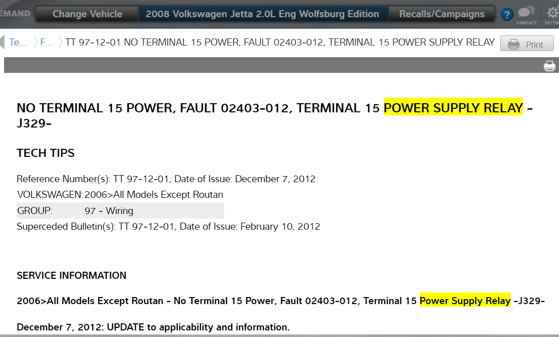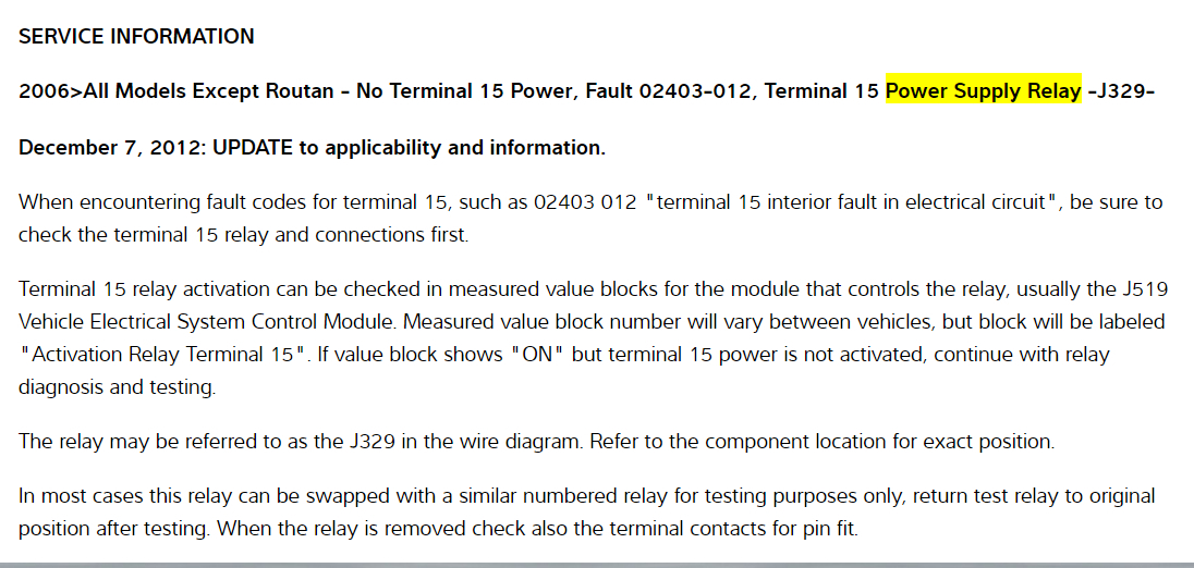 Hello, I have a TSI 2.0L Wolfsburg Edition. I'm having an issue with my car having a no crank situation. The car starts if you jump the starter, so that indicates to me that I have compression, fuel, and spark (right?). Anyway, with that I assume it's an electrical issue with the signal not reaching the starter but I cannot find the relays. I want to see if the ignition relay and the starter relay are okay, but I do not know where their location is. can you please assist me with that? Please help. thank you.
