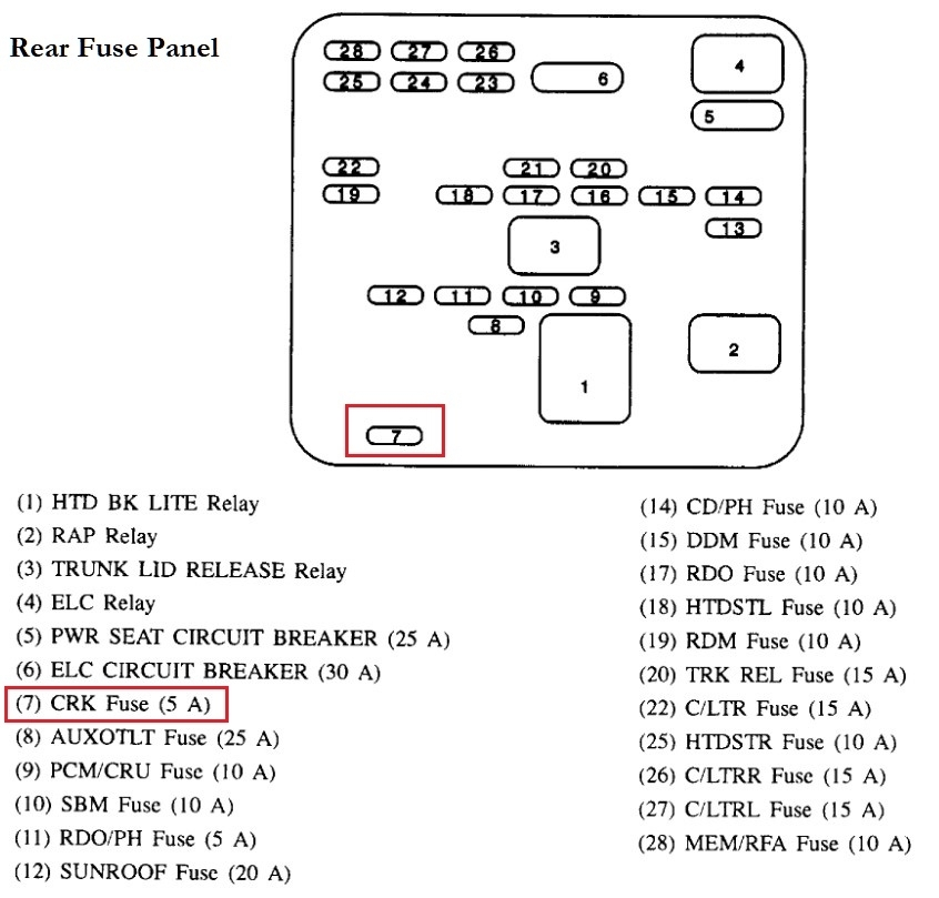 So, there's another Rear Fuse/Junction Block where the CRK Fuse 5Amp is located, its supposed to be under the rear seat, I have removed these seats before, you need to pull up on the front the rear seat, you should feel the clip locations under the seat with your hands, you dont pull up right in the middle of the seat, but about a foot from the center of the seat to the right and left of center, then give it a good pull and it should pop up in the front and can be removed, Im not sure why they put a Crank fuse in that location, but its not convenient.