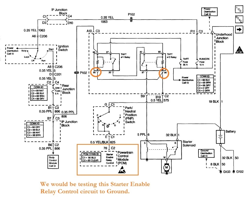This test is skipping a few steps, so Ill leave it up to you. You could just take out the THFT 1 relay and see if pin 85 is being grounded.