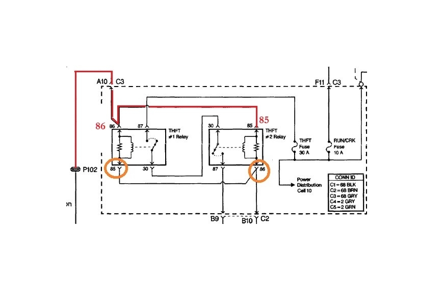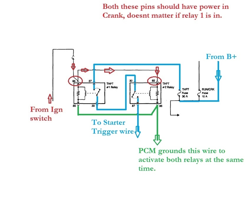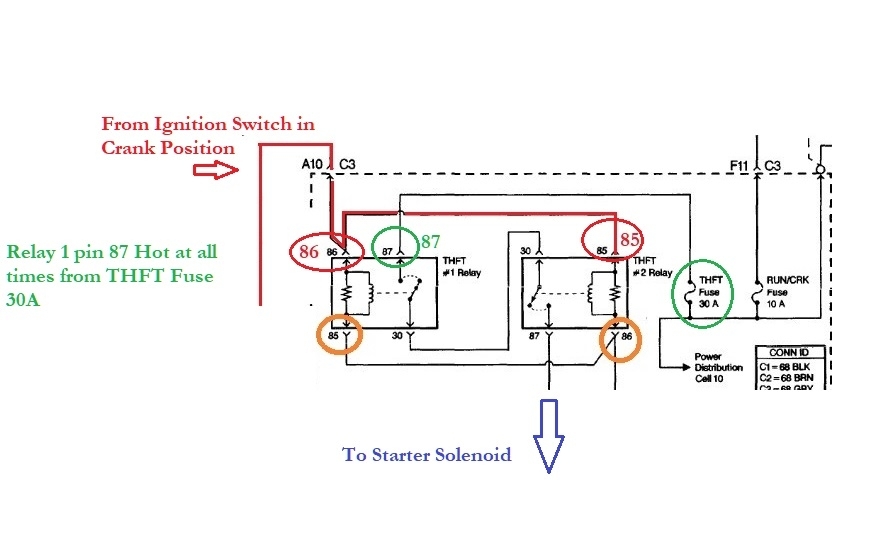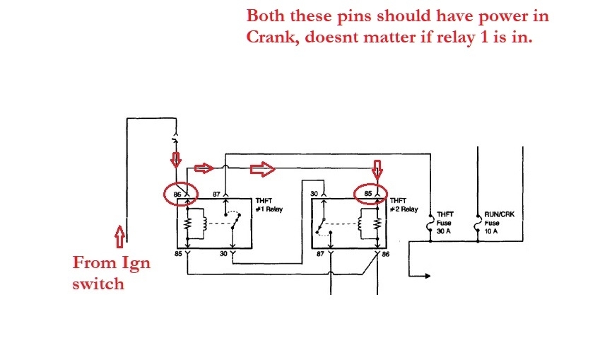 Okay, so, in order to test theft relay 2, I have to have theft relay one out? And my crank fuse is a 10 amp.