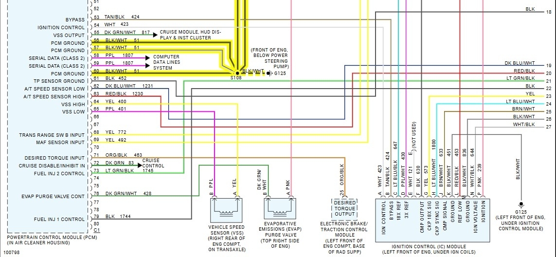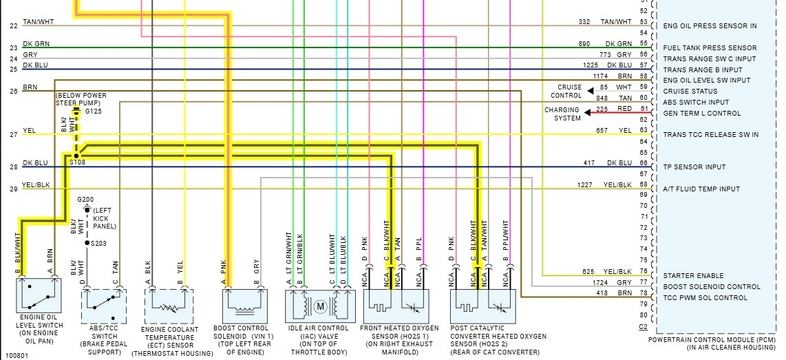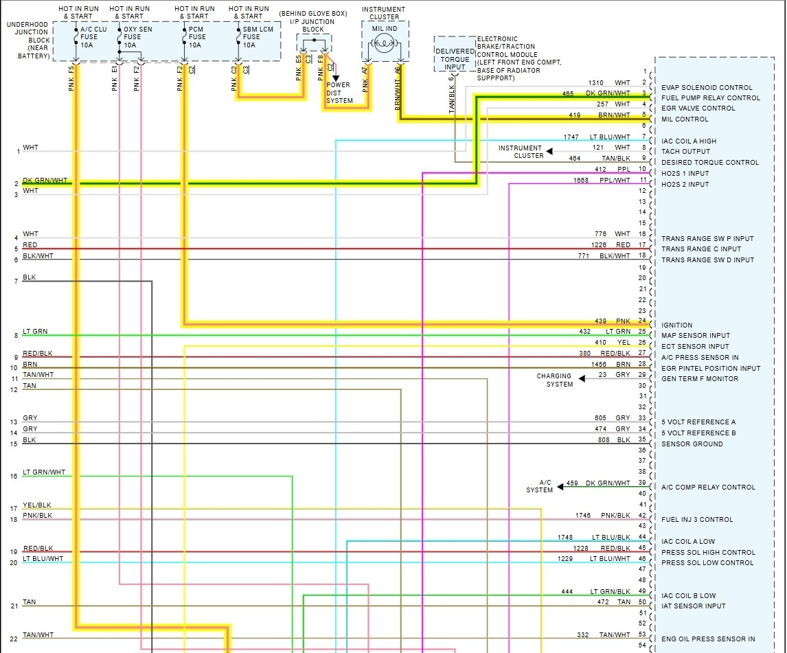 These are part of the PCMs diagrams, pages 1(top & bottom) and 4(top & bottom), they show most of the powers and grounds for the PCM, the wires should be load tested but for now you can check to make sure youre getting a full 12volts to these locations, I have to go out on an emergency call today, but will get back with you as soon as I can. At least we know whats going on now. Try to use a test light and meter for checking these as well.