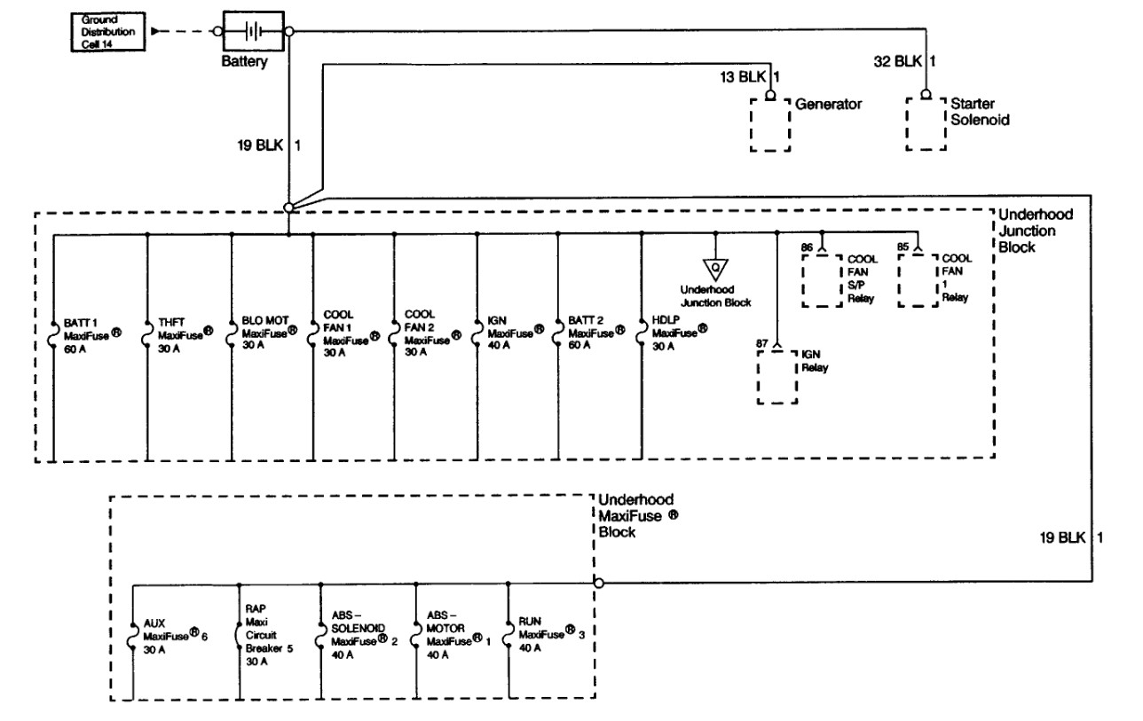 The maxi fuse that is labeled theft is in the underhood fuse panel.