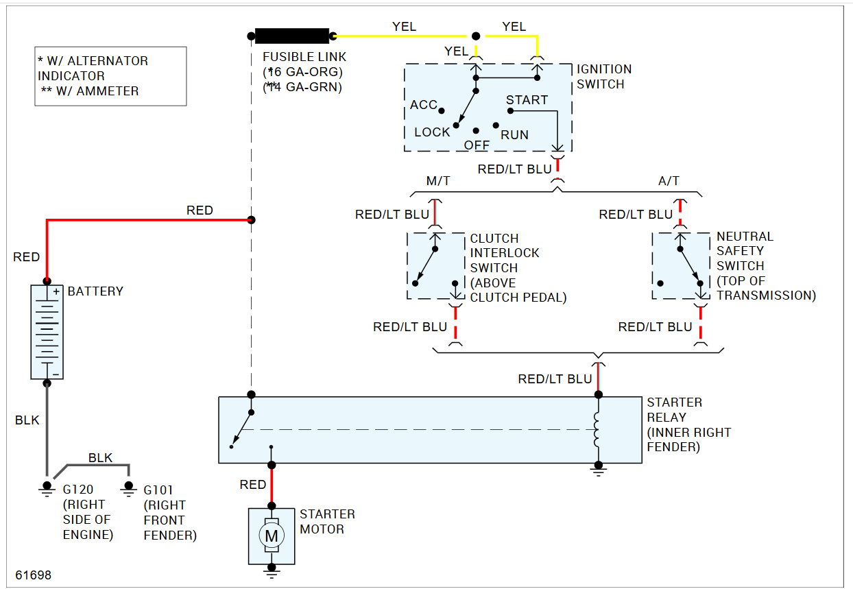 Thanks for the response, Ken, it's appreciated. No, it will not crank in neutral. Key on there is power to the ignition switch. There is no switch power going to the S post of the starter relay. I pulled the ignition switch, and all the contacts were clean. I manually triggered the ignition switch by using a screwdriver and pushing the switch slide forward and I got the starter relay to click. I think there are a few things going on ie,. bad starter relay and possibly bad ignition switch. The ignition switch hits hard spots intermittently while manually triggering it with a screwdriver. Thanks Ken.