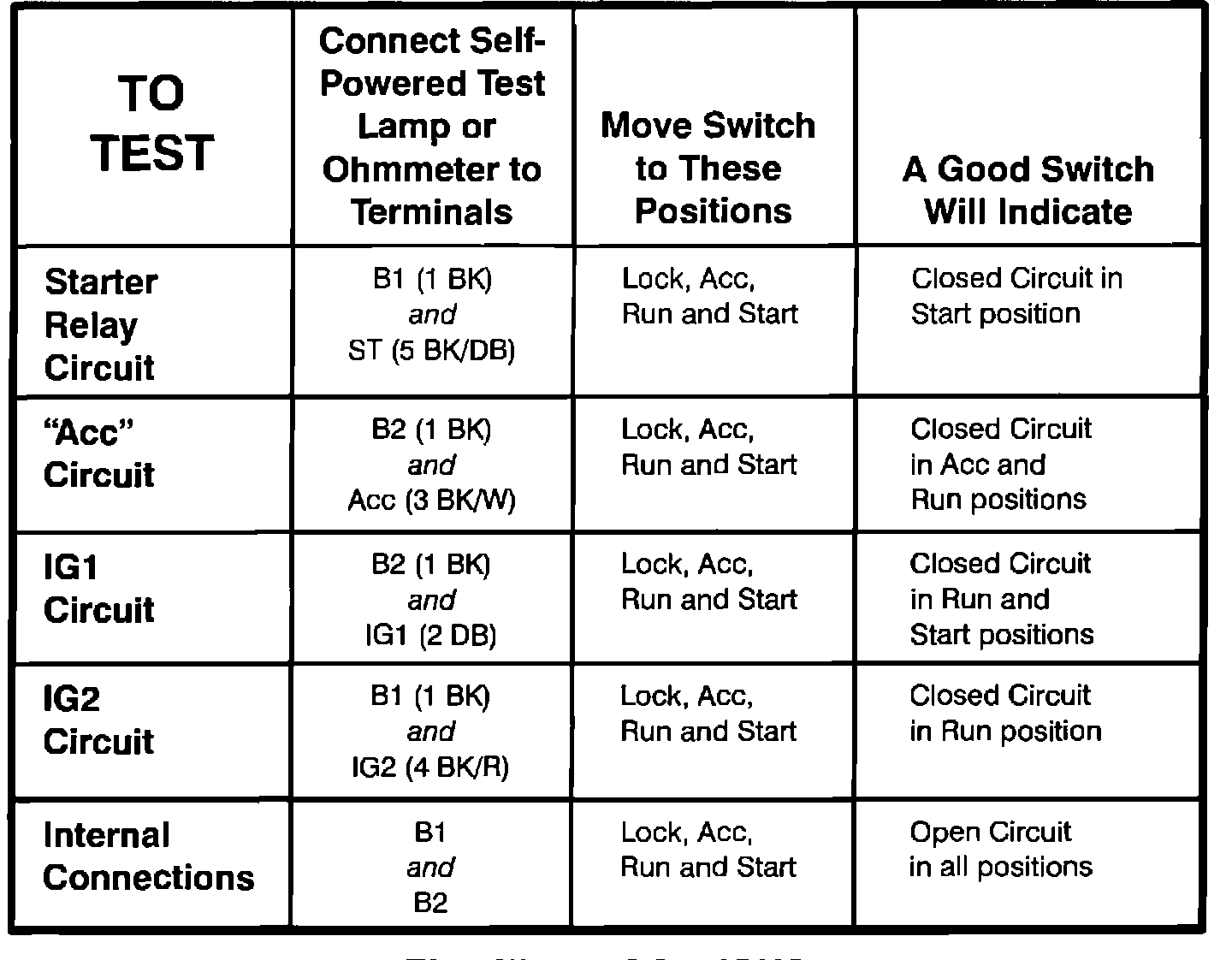 Vehicle Starting and Charging Sensors and Switches - Starting and Charging Ignition Switch Testing and Inspection Component Tests and General Diagnostics