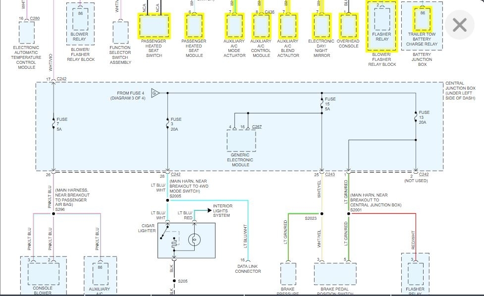 Okay, fuse 23 is fed from the ignition switch. I attached the diagram for you to view. I feeds fuse 22 as well.