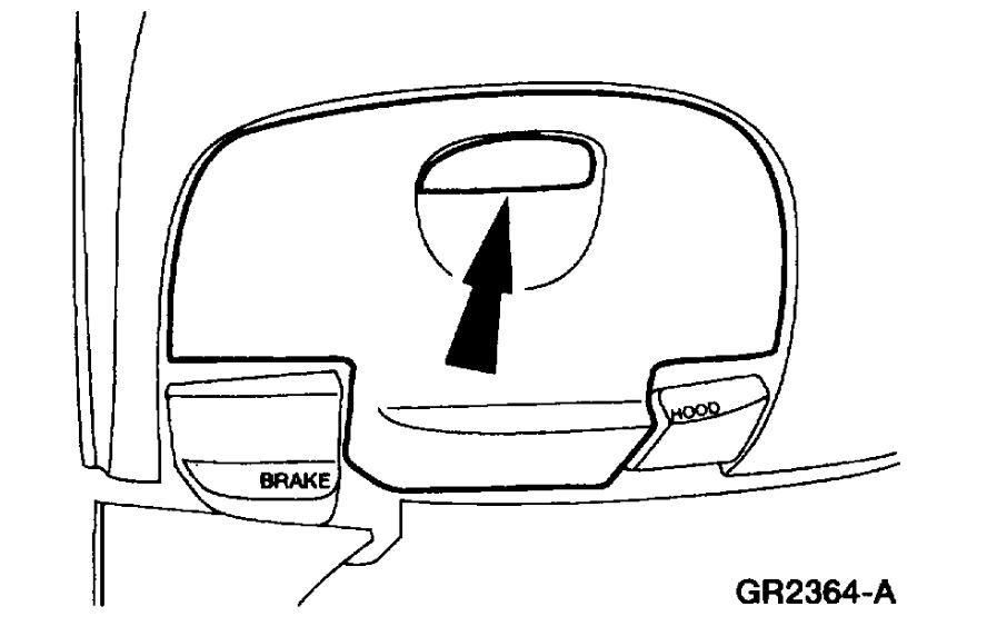 4. Disconnect the hood latch release handle from the lower instrument panel steering column cover.
