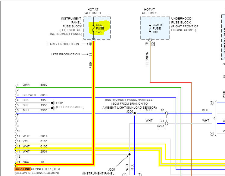 Okay, so I checked everything you said. Both grounds are good but no constant power or power at all to pin 16. Checked the DLC fuse and have power to both sides. Now what I’m stumped here! Thanks in advance. I’m here with the car rite now, so if you get this and think of anything let me know.