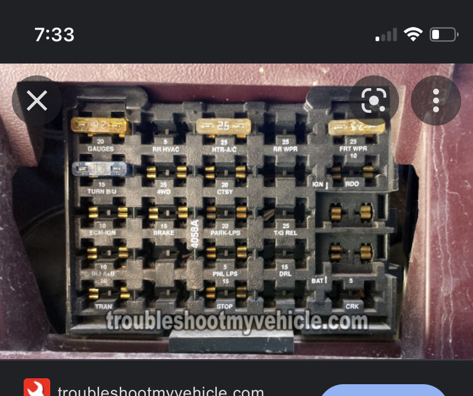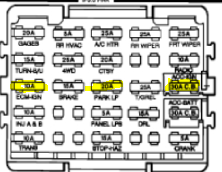 I was sitting in a parking lot with the truck engine on. It was in park. Then it just turned off. No electric, it was almost like the battery was completely drained. Lights still work but nothing else does. Removed the junction box cover and a fusible link (red) that is connected to the second screw from left had burned up.