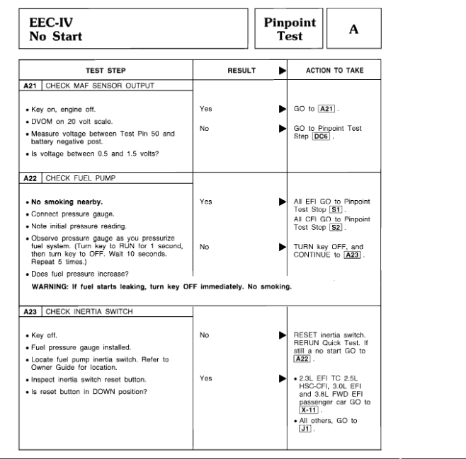 Hello just to add, the EEC relay feeds power to the fuel pump relay and many other components. Check these relays for power.
