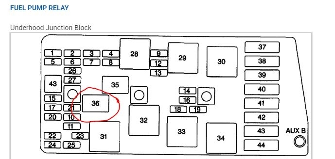 I attached the circuit for the fuel pump. The relay is under the hood and you need to verify voltage to the relay. You will need a test light or a voltmeter.