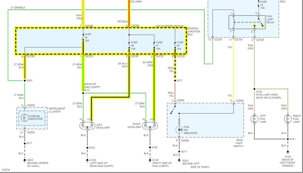 I have recently found a split ground wire from the alternator and the power cable to the starter rubbing through on the chassis. Both issues have been fixed. What I have remaining are the power door locks not working, the key-less entry not working, and the headlights do not work when toggled. I have running lights and high beams but when I switch to headlights, there is nothing. The attached picture shows the position in which the headlights do not turn on. High beams, flash to pass, and fog lights all work.