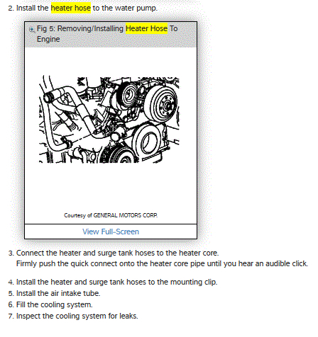 Now to bleed the cooling system, turn off the water hose and put everything back together. Take your radiator cap off and fill the radiator with coolant. Start the engine, with the heat cranked all the way up, and let it idle until the engine warms up a bit. Watch the coolant level in the radiator. When it dips down, pour more coolant in the radiator immediately. Do this for a while until the coolant level stops dipping down. Turn the engine off and put the radiator cap back on. It's as simple as that.