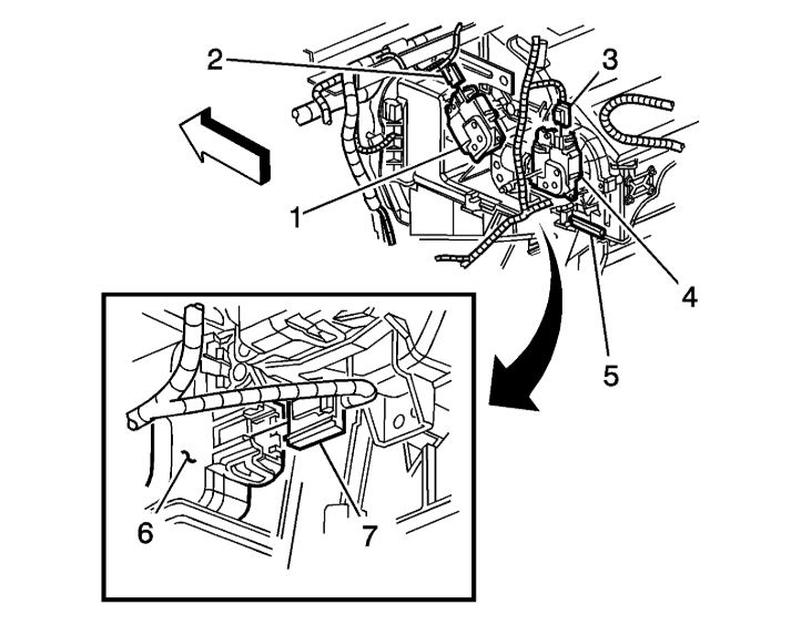 3. Disconnect the air temperature actuator electrical connector (7).