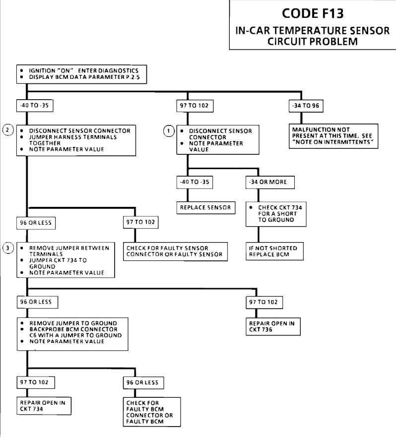 The sensor is located behind the upper dash cover on the right side. Start by removing the vents from the trim cover, a thin screwdriver at one end and pull them out, Then remove the screws at both sides of the trim pad. The pad then lifts off. That gives you access to the sensor for testing or replacement. There is a TSB on them but not for a total loss of heat but for temperature drifting. That relates to the last image showing the sensor needs to be inside the tube to the aspirator and not outside it. As you are not getting heat it sounds like the sensor or wiring has a short in it. If the sensor had failed open it would only give you heat as it would think it was 40 below zero.