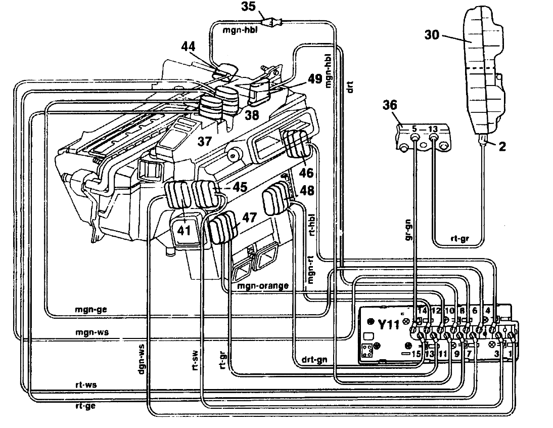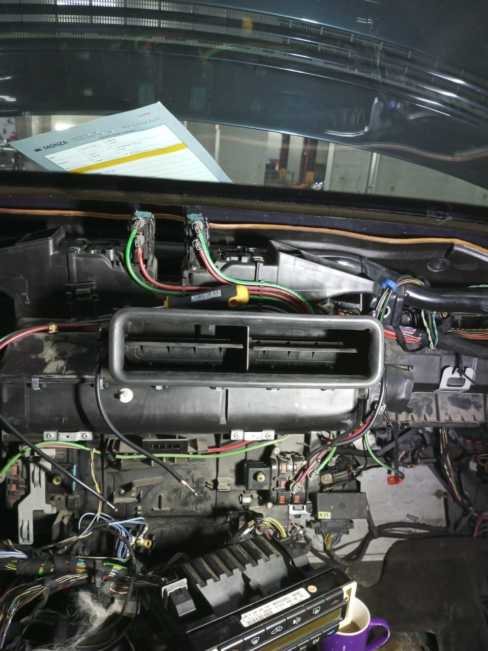 replace entire heater assembly, but hot air does not come out of center dashboard heater vent. left and right vents a working but hot air flow is not optimum level.