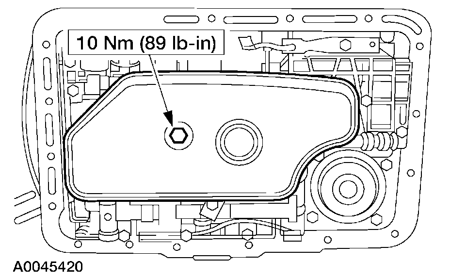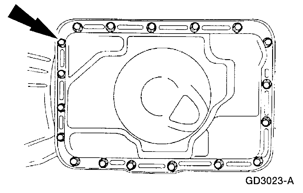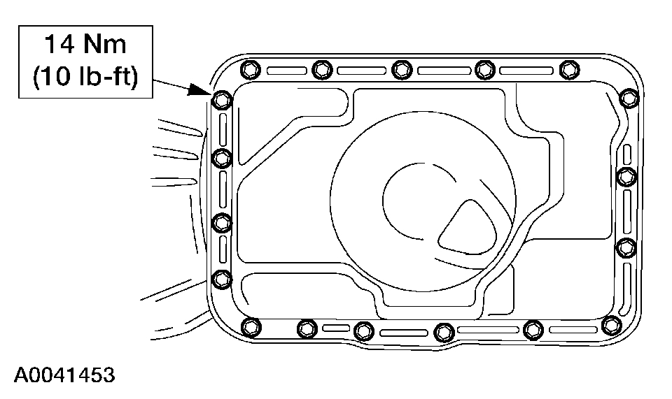 ^ Tighten the transmission fluid pan screws in a crisscross sequence.