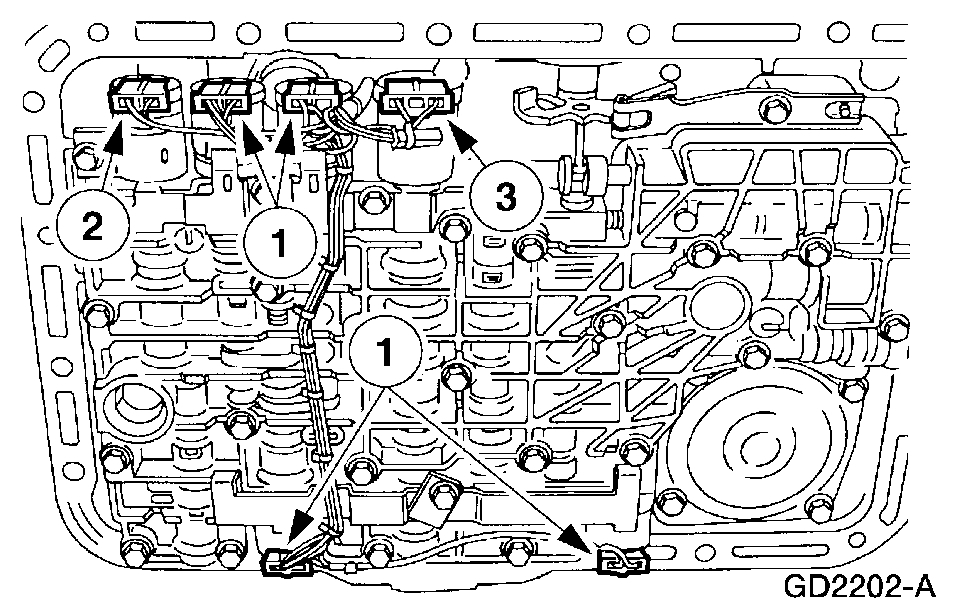 8. Connect the TCC, SSD, SSB, and EPC solenoid electrical connectors.