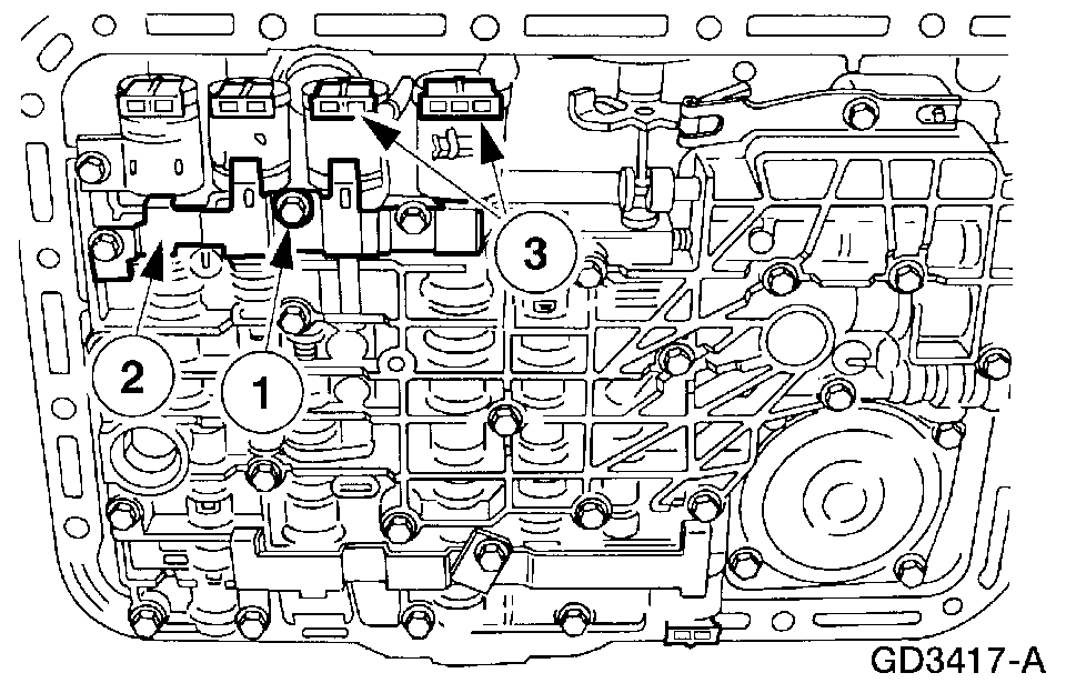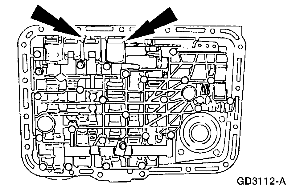 CAUTION: Shift solenoids may pop out of their bore. This may damage the solenoids.
