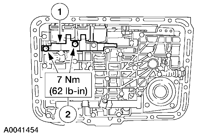 6. CAUTION: The solenoid clamp must be installed in the TCC and EPC solenoid grooves, shift solenoid pockets and the No. 204 plug.